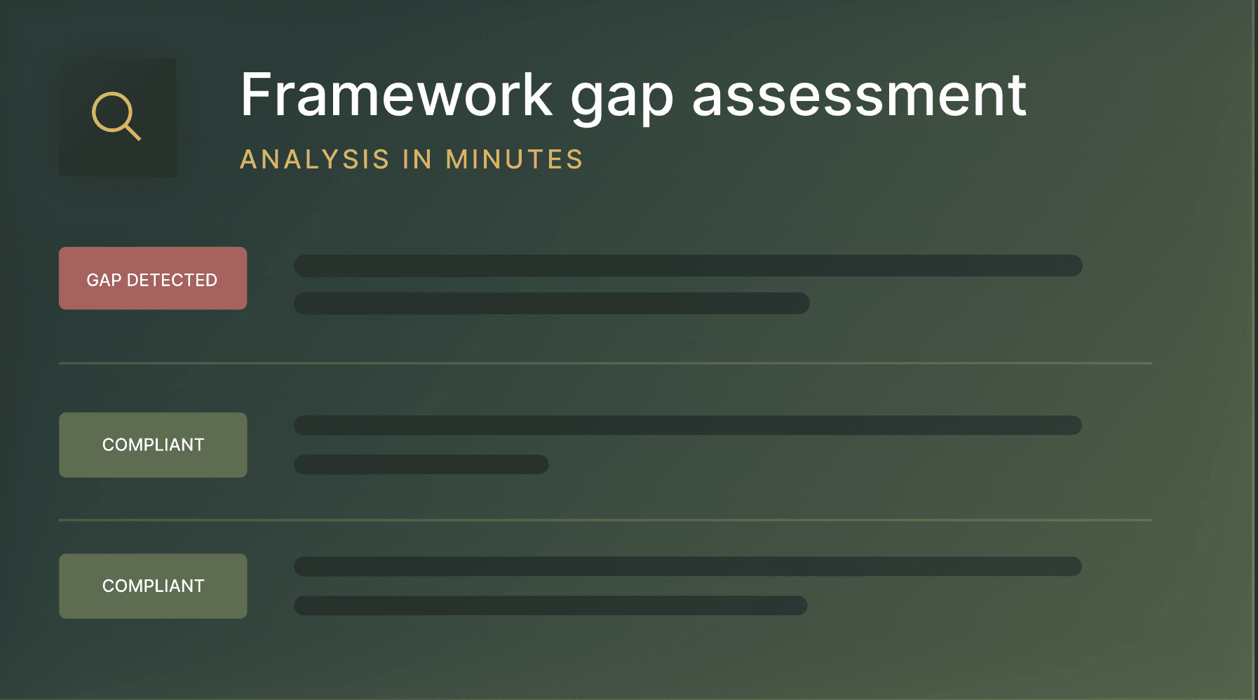 Produce audit reports, gap analyses, and readiness assessments 90% faster with standardized outputs your team can validate and tailor per client.