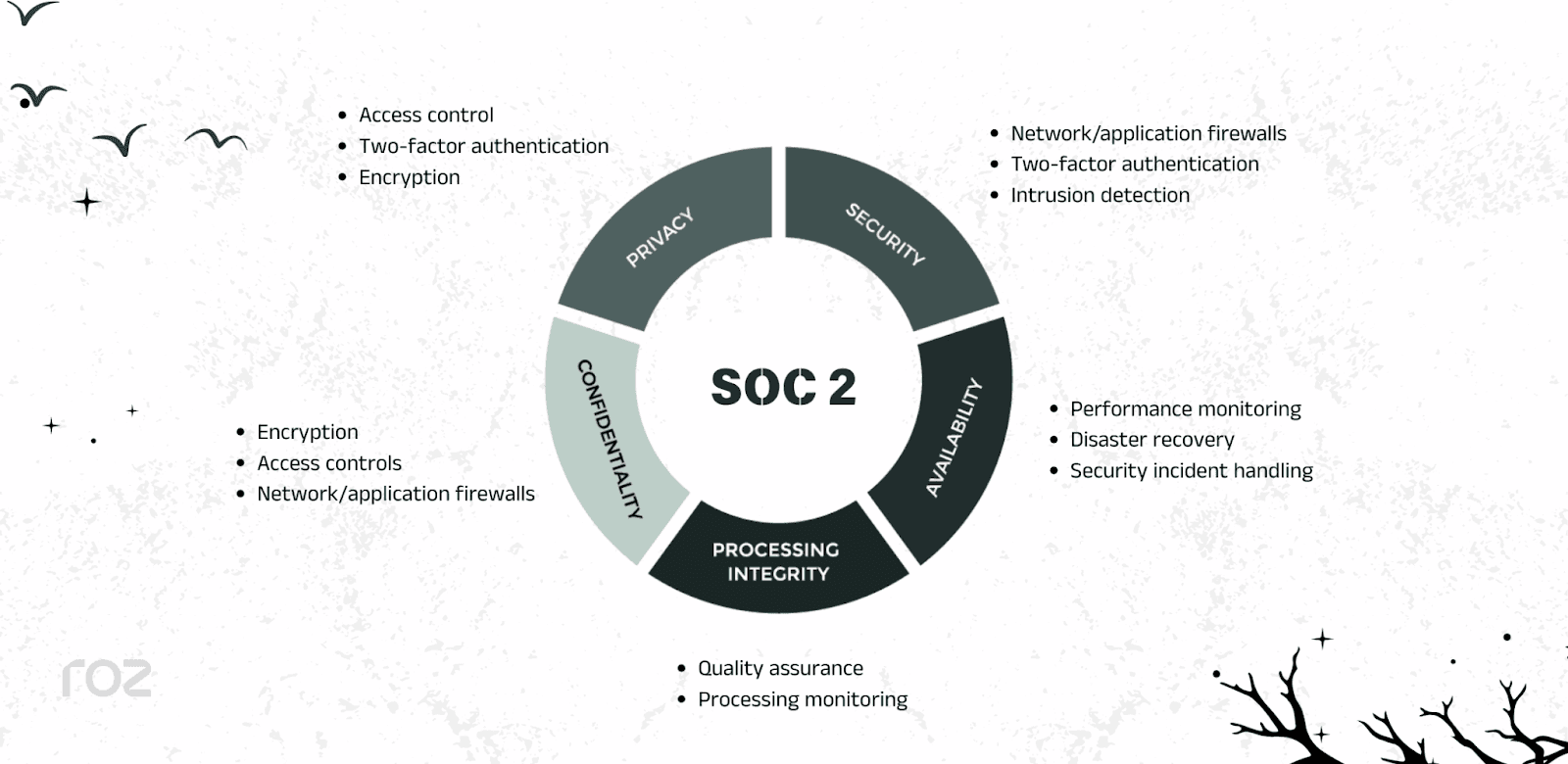 Companies choose the relevant Trust Services Criteria and then have an audit conducted on them to confirm compliance. This, in turn, shows a level of maturity regarding security, and the company is then able to build confidence with the stakeholders.